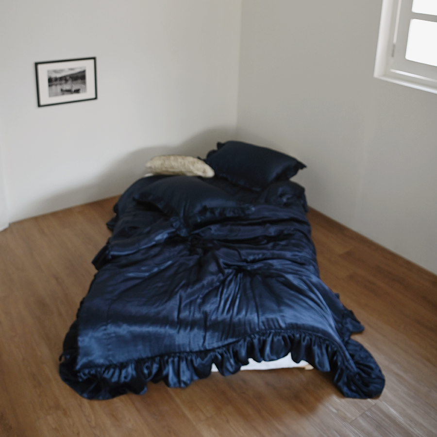 Deep Navy 새틴 프릴 차렵이불