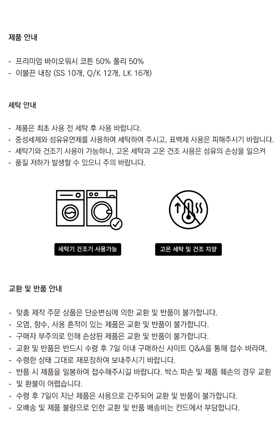 세탁기/건조기 사용가능 (고온세탁/건조 금지)