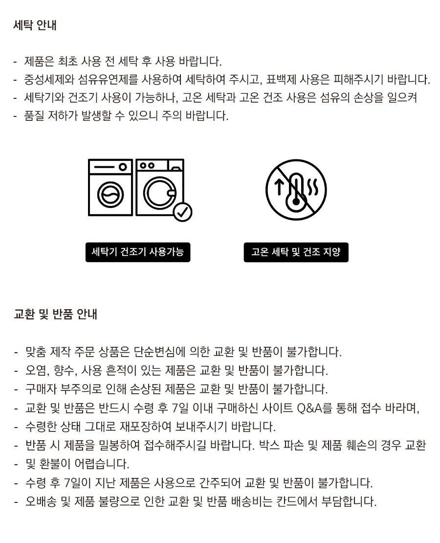 세탁기/건조기 사용가능 (고온세탁/건조 금지)