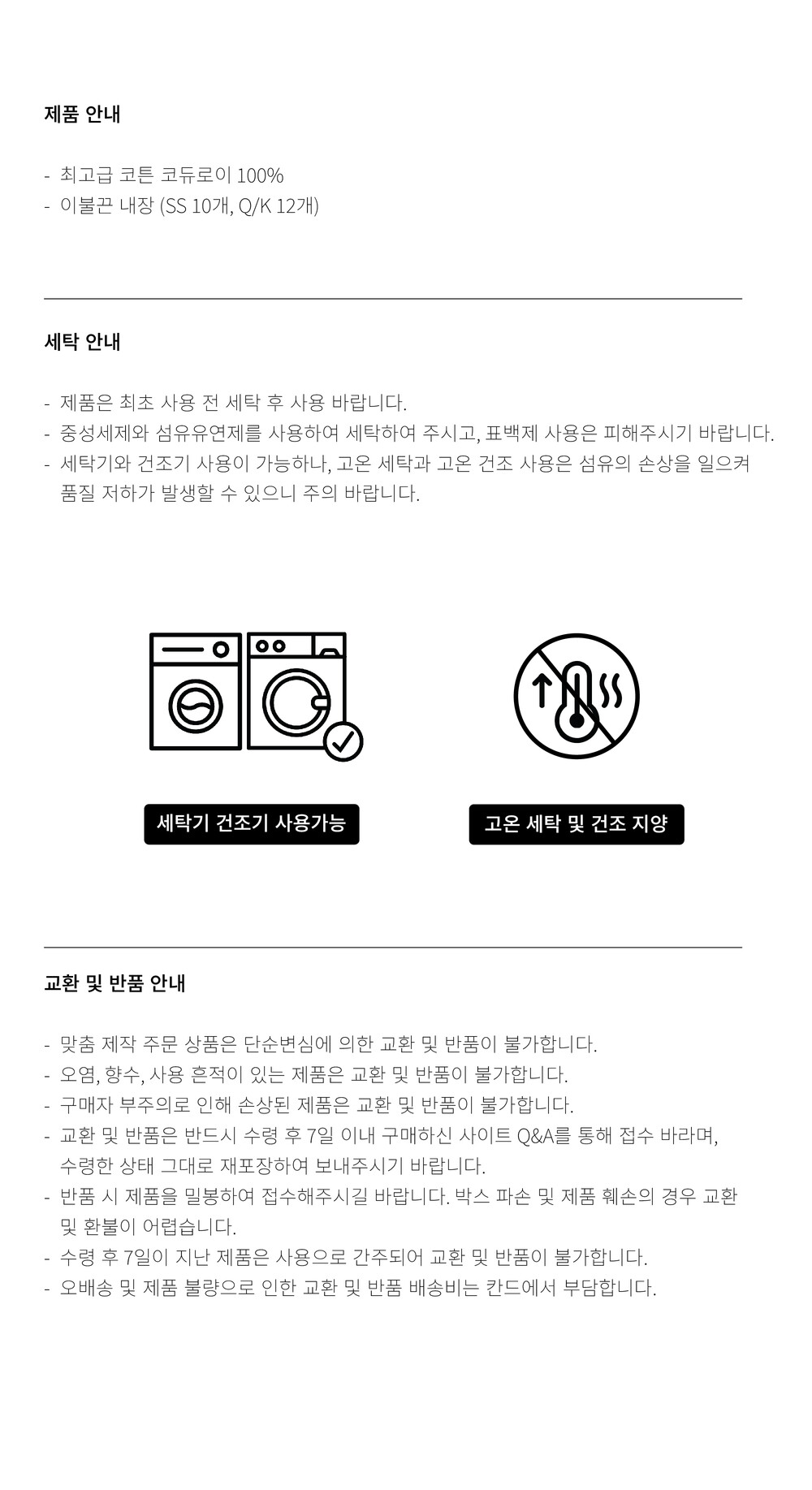 세탁기/건조기 사용가능 (고온세탁/건조 금지)